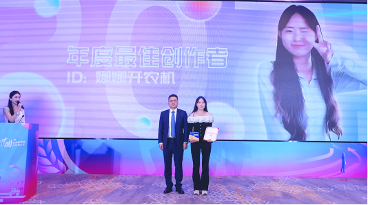 ??备受瞩目的年度创作者颁奖盛典将大会气氛推向高潮?!?025农机短视频创作者发布仪式”将活动推向高潮?!巴媾┗募延睢薄靶硖锾铩被瘛澳甓刃氯翊醋髡摺?,“梦园在乡村”“玩农机的孙小姐”“开拖拉机的董少少”获“年度优质内容创作者”,“在俄罗斯种地的雯姐”“半仙做农机”获“年度最具影响力创作者”,“河南阳阳”获“年度最美农机人”,“传凯的农村故事”成为“年度农机推广大使”,“娜娜”获“年度最佳创作者”,“民女曹子榆”获“乡村振兴贡献奖”。他们深刻反映了中国现代农业的科技含量与人文情怀,是“科技兴农”理念在移动互联网端的生动实践。人气创作者代表曹子榆、姜晓娜分享了她们的创作心路与实战经验,现场互动频繁,反响热烈。