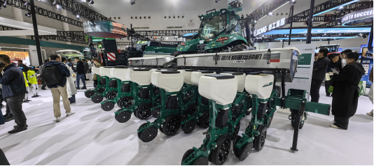??收获机械展区同样亮点纷呈,潍柴雷沃智慧农业不仅带来了雷沃谷神CE04玉米机、雷沃谷神RG系列履带机等明星产品,国产最大喂入量小麦机雷沃谷神GS8239收获机以23公斤/秒的大喂入量打破国外技术垄断,能够实现效率优先、粮食质量优先等自适应调控,最大限度的减损增效,使我国大喂入量谷物联合收割机成功跻身国际先进水平。