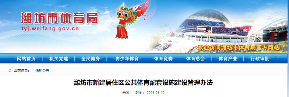 ??为有效解决新建居住区公共体育配套设施建设的有关问题,建立起新建居住区公共体育设施建设、管理和维护的长效机制,经过充分调研论证,2023年7月26日,潍坊市体育局、潍坊市自然资源和规划局、潍坊市住房和城乡建设管理局联合印发了《潍坊市新建居住区公共体育配套设施建设管理办法》(以下简称《办法》)。