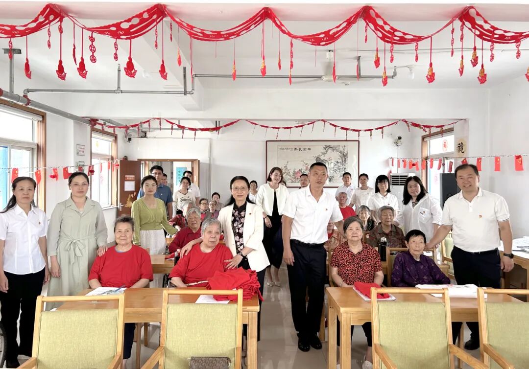 ??党员们为参加活动的老人赠送定制“中国红”T恤,详细询问了老人们近来身体状况、倾听老人的心声,并表达了对老人们节日的关心和问候,希望他们在端午节吉祥安康、福寿双全、鸿运披身、万事顺利。整个活动情真意切、其乐融融,党员们的到来,让老人们感受到了来自基层党支部的关怀,也为养老院注入了青春力量。