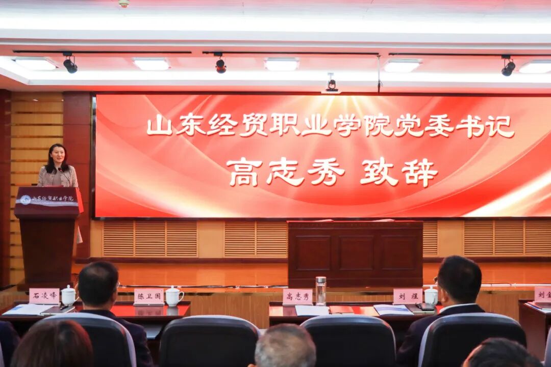 ??高志秀代表全院师生向与会领导、嘉宾表示热烈欢迎。她指出,潍城区乡村振兴学院是潍城区人民政府与山东经贸职业学院共同搭建的融合人才培养、科技创新、产业孵化、文化传承、生态治理等功能于一体的乡村振兴综合服务平台,肩负着为乡村振兴培养高素质人才、提供智力支持和技术服务的重要使命。她表示,学院将聚焦乡村振兴五大路径开展研究,编制规划、提供咨询;聚焦乡村振兴人才需求,组建技术服务团队,培养更多懂农业、爱农村、爱农民的“三农”工作队伍;聚焦农业产业升级、特色农业发展,培育壮大乡村特色产业,推动农业科技成果在乡村落地生根。