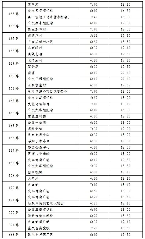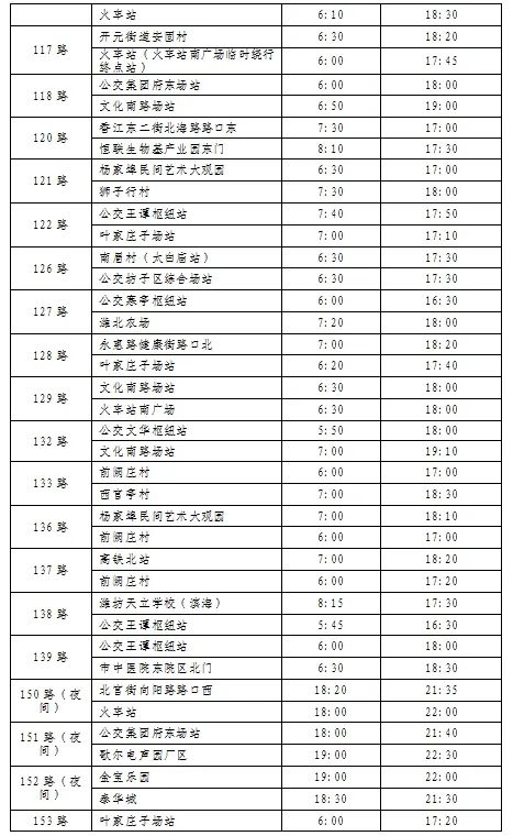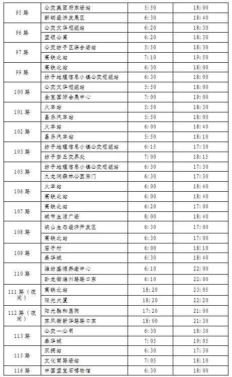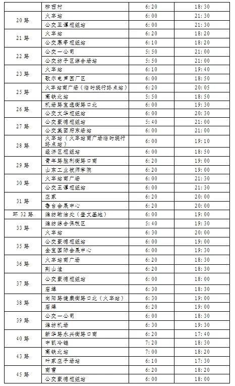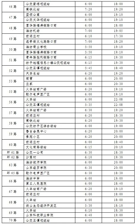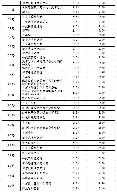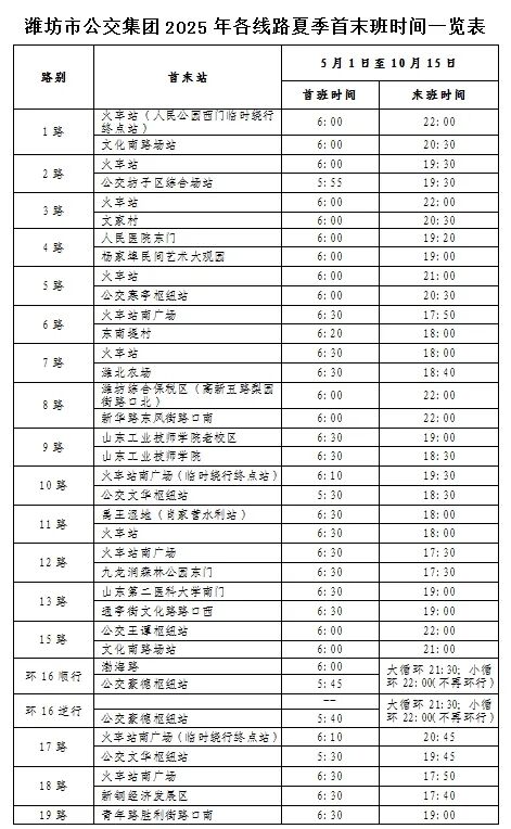 ??附:潍坊市公交集团2025年各线路夏季首末班时间一览表