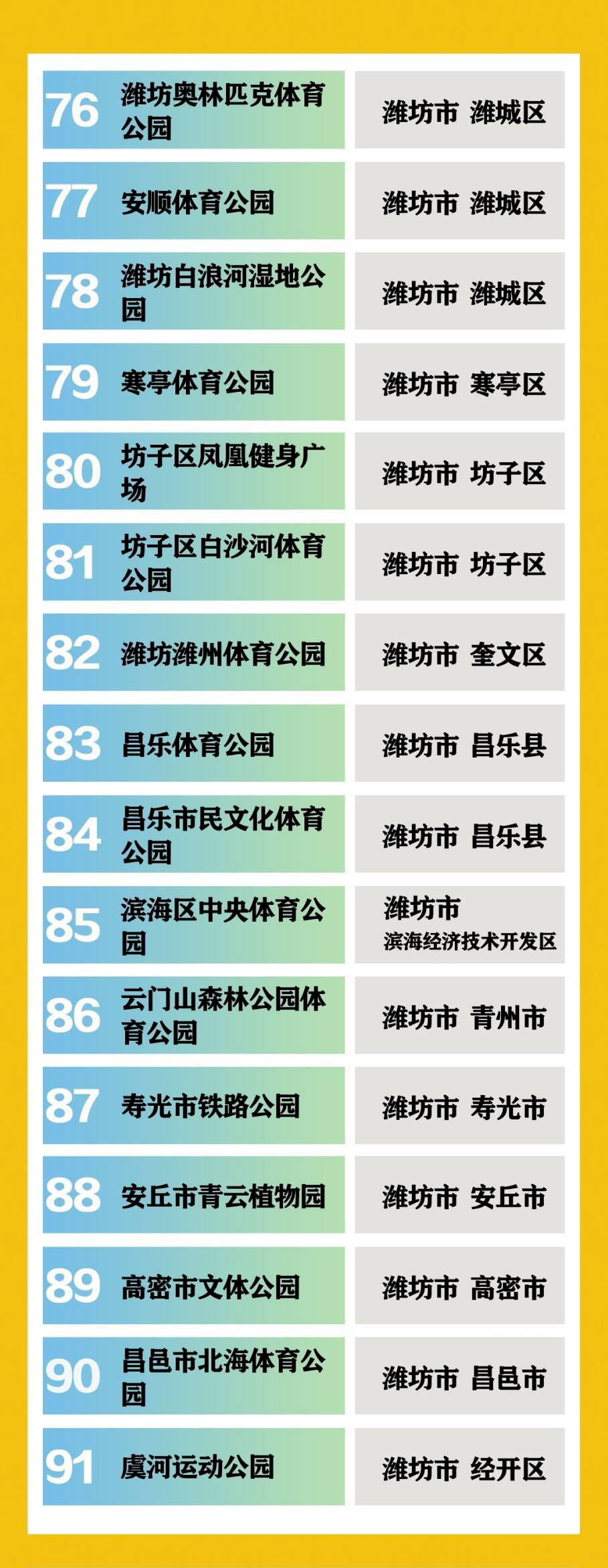 ??6月27日下午,山东省人民政府新闻办公室举行“走在前 挑大梁 奋力谱写中国式现代化山东篇章”主题系列新闻发布会第八场,据介绍,自“十四五”以来山东新建或改扩建大型体育公园93个,总数达到159个,其中潍坊16个。