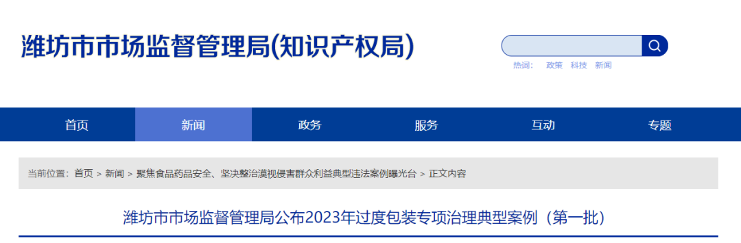 ??潍坊市市场监督管理局公布2023年过度包装专项治理典型案例