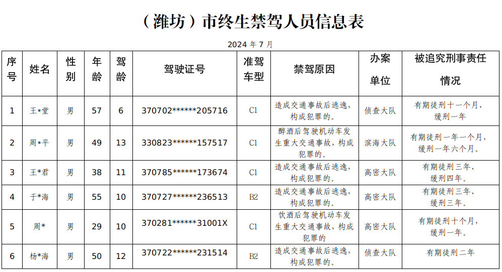 ??终生禁驾,对于大多数的小伙伴来说,可能是一项相对陌生的处罚,虽然希望你们永远不会跟这项处罚沾边,但还是有必要给小伙伴们做个普法。因为,7月份,潍坊有6人被终生禁驾,这辈子都不允许开车了!